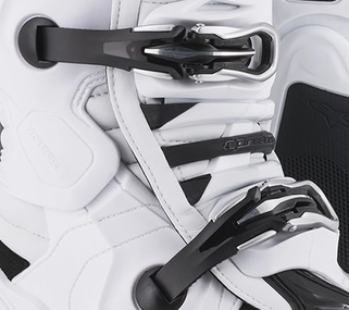 Kengän kiinnitys säädettävillä soljilla.
