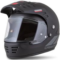- Moottoripyöräilykypärässä on kirkas pleksilasi kasvot ja valmistelu repäisylaseja varten.