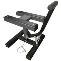 Telineen kiinnittämiseen nostetussa asennossa käytettävä tynnyri toimii turvalukkona moottoripyörän kanssa työskenneltäessä. Kun jalusta on nostettu ylös, työnnä se yksinkertaisesti vastaavaan reikään, jolloin se kiinnittyy tukevasti paikalleen. Tämä estää jalustaa taittumasta tai liikkumasta itsestään huollon aikana. Vankka metallirakenne takaa korkean kestävyyden ja pitkän käyttöiän myös tiheässä käytössä. Tämä ominaisuus lisää merkittävästi turvallisuutta moottoripyörää huollettaessa.